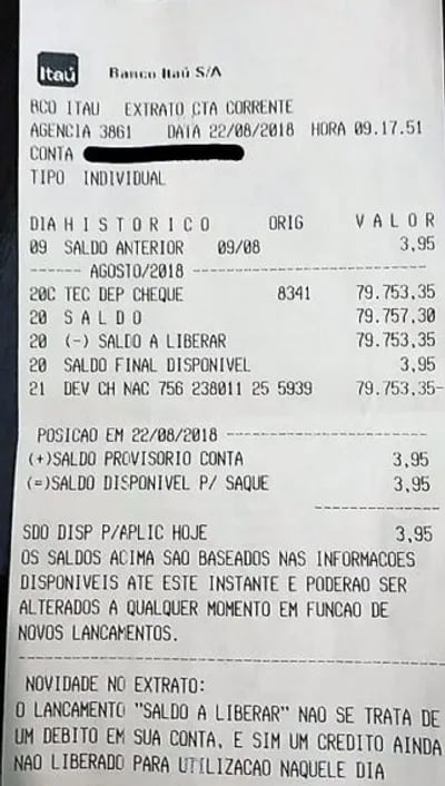 Tradução de extrato bancário para Banco do Brasil